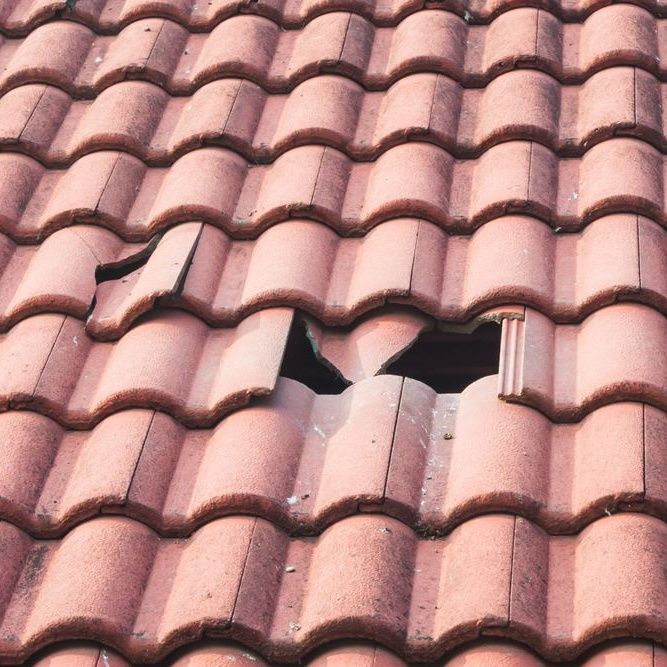 • Dakpannen zijn verschoven of gebroken door storm